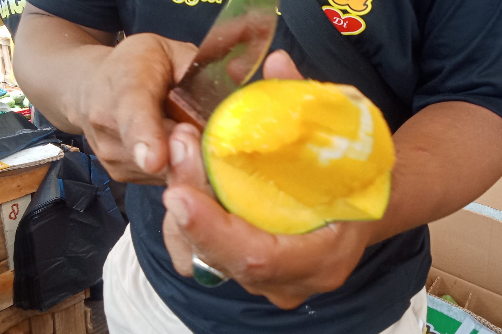 ” Saya suka dengan jenis mangga disini, tidak hanya cara menikmatinya yang unik,akan tetapi warna daging buahnya kuning kemerahan serta teksturnya tidak banyak berserat sehingga ketika di makan tidak parkir di sela – sela gigi,” ujarnya sambil ketawa, Selasa ( 4/11 )