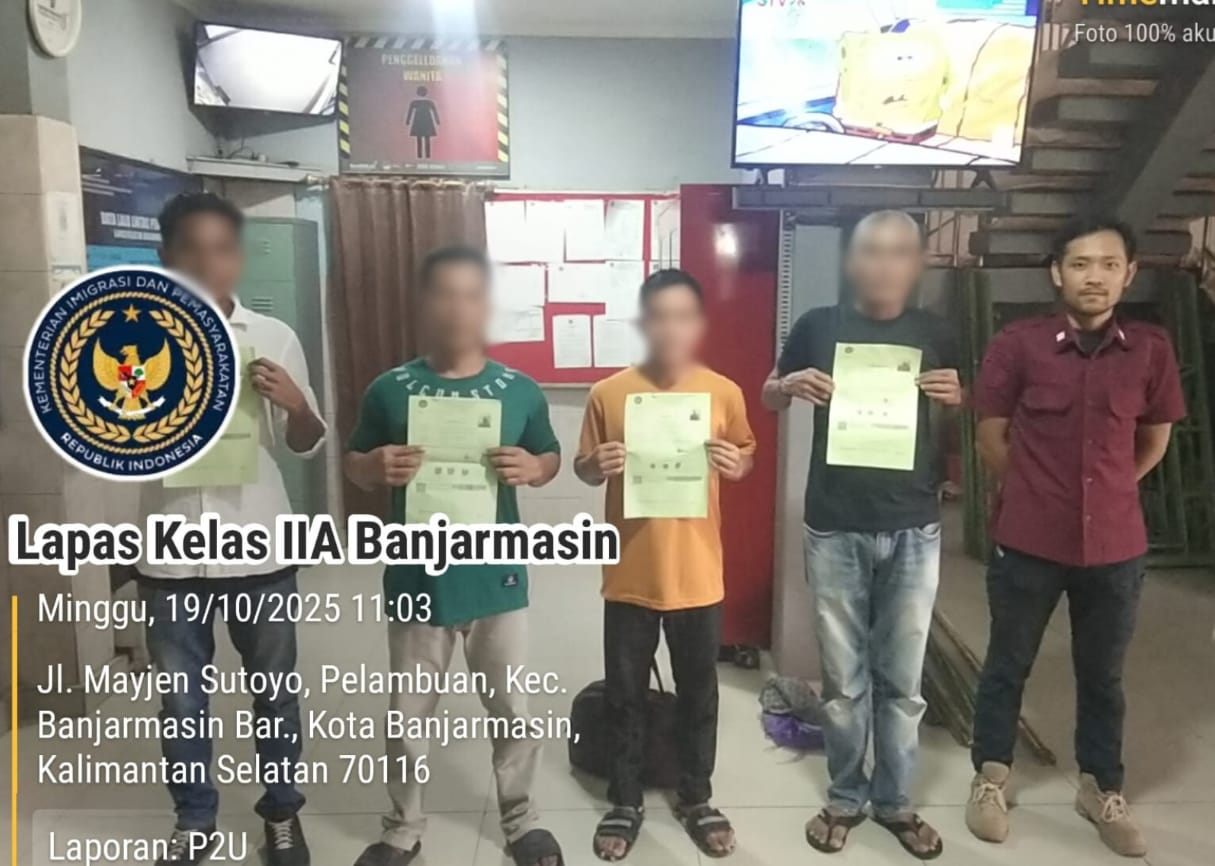 Empat Warga Binaan Pemasyarakatan (WBP) Lapas Kelas IIA Banjarmasin kembali menghirup udara kebebasan pada Minggu (19/10). Dari jumlah tersebut, tiga orang menerima Pembebasan Bersyarat (PB) setelah memenuhi seluruh syarat administrasi dan pembinaan, sedangkan satu orang dinyatakan bebas murni karena masa pidananya telah berakhir.