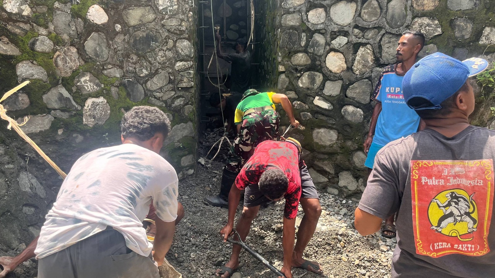 Natemnanu, 2 April 2026 – Satgas Pamtas RI–RDTL Sektor Barat Yonarhanud 2 Kostrad Pos Oepoli Sungai melaksanakan kegiatan gotong royong pembersihan saluran air bersama warga di Desa Natemnanu, Kecamatan Amfoang Timur, Kabupaten Kupang, Kamis (02/04).