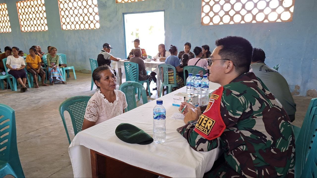 Eban – Makosatgas Pamtas RI-RDTL Sektor Barat bersama dengan Yayasan Tangan Pengharapan melaksanakan pelayanan kesehatan dan konsultasi kesehatan gratis untuk masyarakat sekitar di Desa Eban, Kec. Miomaffo Barat, Kab. TTU. Sabtu (04/10)