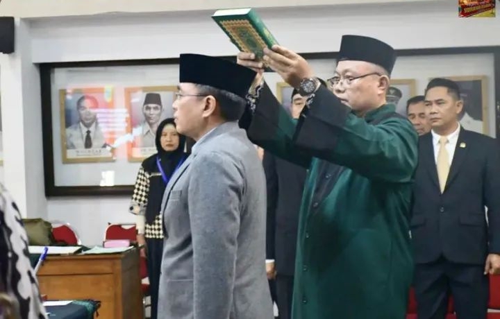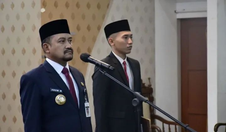 PEMALANG, KABARMETRO.CO -Bupati Pemalang Anom Widiyantoro melantik dan mengambil sumpah janji Penjabat (Pj) Sekretaris Daerah (Sekda) Kabupaten Pemalang Endro Johan Kusuma di Gedung Sasana Bakti Praja, Jumat (24/10/2025).