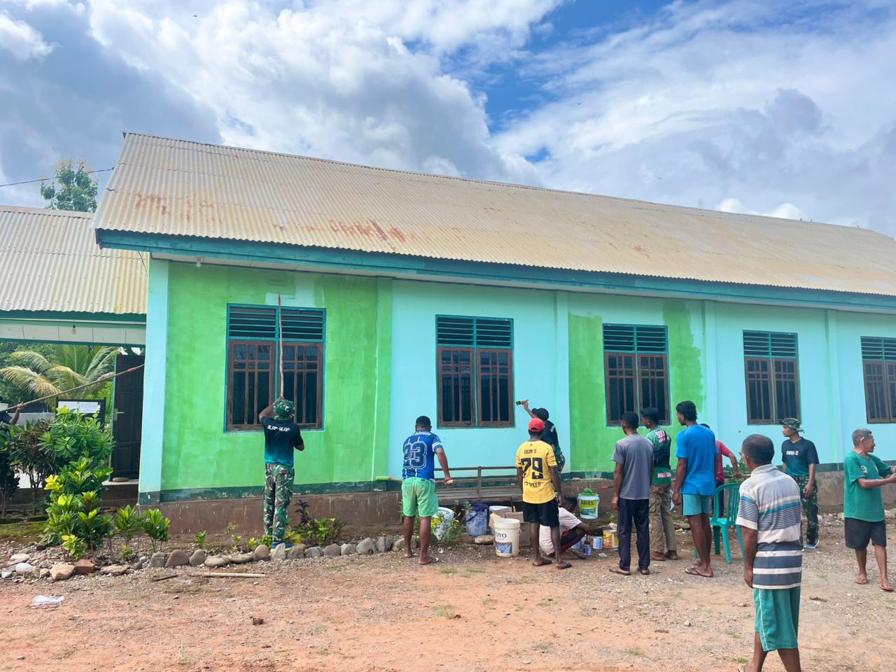 Natemnanu – Satgas Pamtas RI–RDTL Sektor Barat Pos Oepoli Tengah melaksanakan kegiatan karya bakti berupa pengecatan Gereja Jemaat GKTT Imanuel Oepoli Desa Netemnanu Utara, Kec. Amfoang Timur, Kab. Kupang. Senin (23/02/2026).