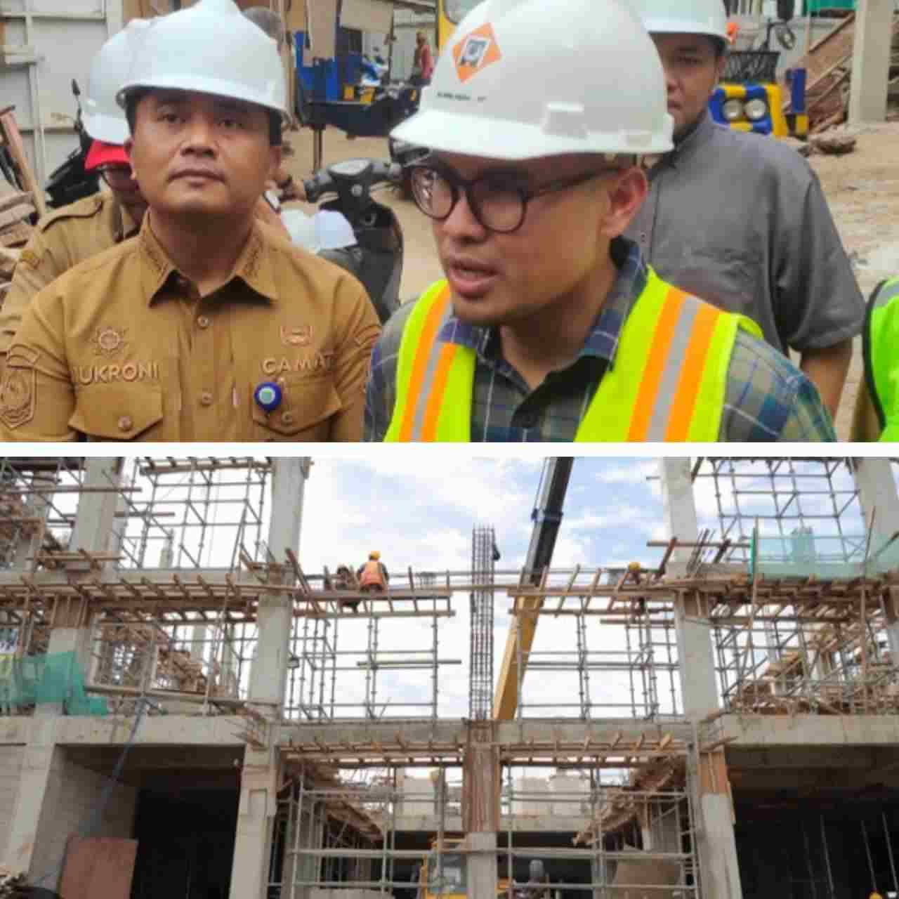 Wakil Wali Kota Tangerang Selatan, Pillar Saga Ichsan didampingi Camat Pamulang Mukroni, meninjau progres pembangunan Gedung Serba Guna (GSG) yang berlokasi di samping Kantor Kecamatan Pamulang, pada Selasa (09/12/2025).