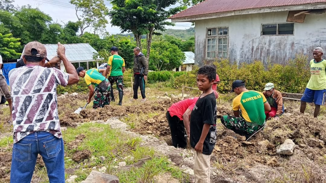 Belu – Satgas Pamtas RI–RDTL Sektor Timur Yonarmed 12 Kostrad Pos Laktutus melaksanakan karya bakti membantu warga melakukan penggalian dan pengukuran pondasi rumah di Dusun Fohoeka, Kecamatan Nanaet Duabesi, Kabupaten Belu. Kehadiran prajurit Satgas menjadi dukungan nyata bagi warga yang tengah memulai pembangunan hunian baru.