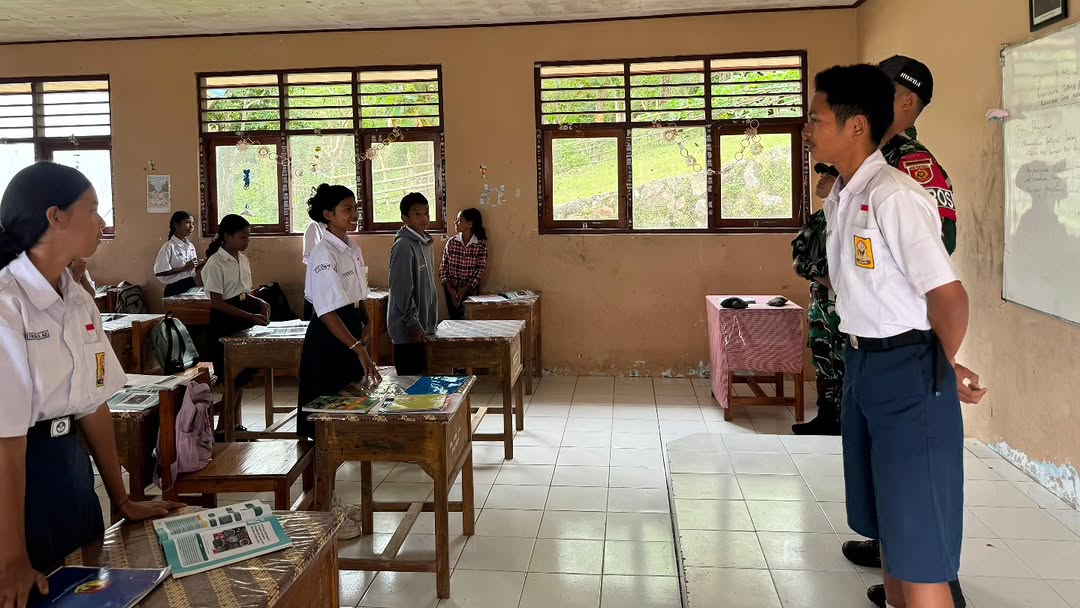 Belu, NTT – Satgas Pamtas RI–RDTL Sektor Timur Yonarmed 12 Kostrad melalui Pos Laktutus kembali menunjukkan kepeduliannya terhadap dunia pendidikan dengan melaksanakan kegiatan pengajaran Bahasa Inggris di SMP Negeri Laktutus, Desa Laktutus, Kecamatan Nanaet Duabesi, Kabupaten Belu. Kegiatan ini menjadi wujud nyata peran TNI dalam mendukung peningkatan kualitas sumber daya manusia di wilayah perbatasan. Kamis (09/04/2026).