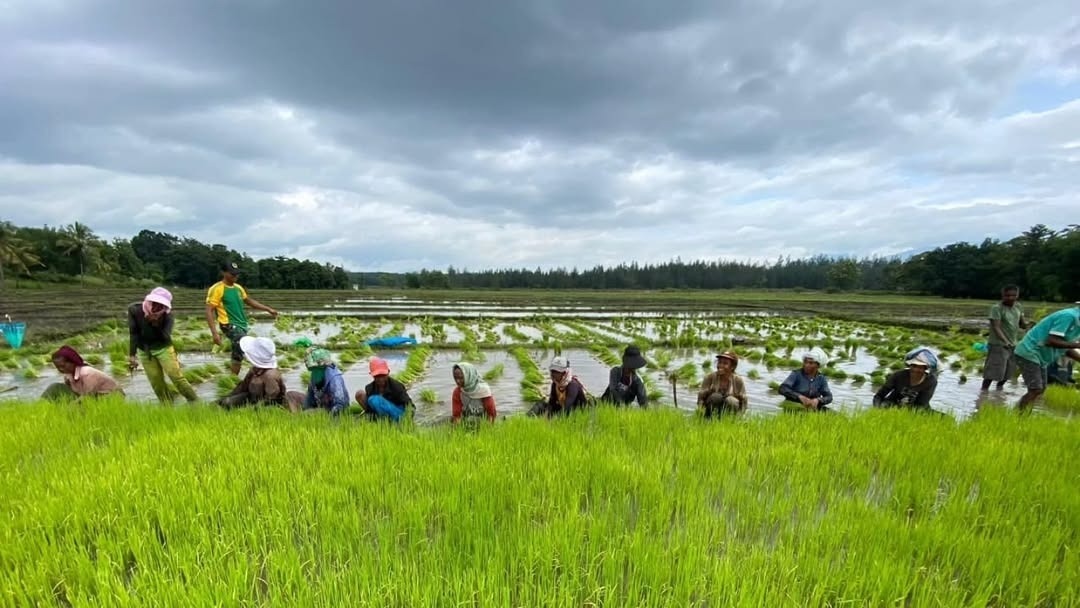 Personel Pos Turiskain bersama para petani turun langsung ke sawah dan bergotong royong menanam padi dengan penuh semangat. Suasana kekeluargaan tampak jelas selama kegiatan berlangsung, mencerminkan sinergi positif antara prajurit TNI dan masyarakat dalam mendukung sektor pertanian lokal.
