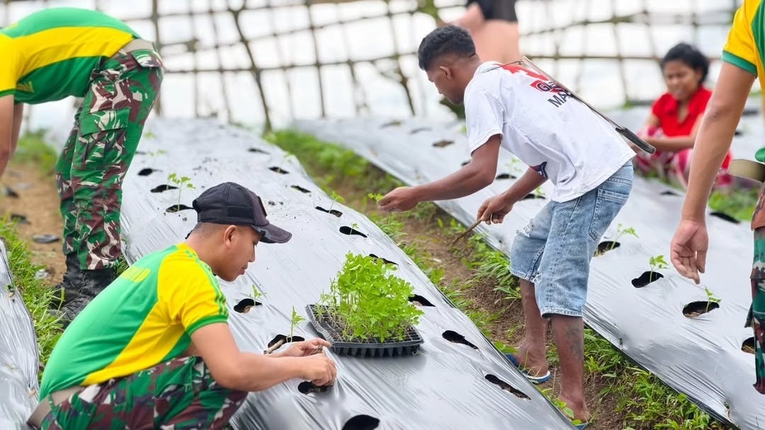 Kegiatan ini menjadi bentuk sinergi antara prajurit TNI dan masyarakat dalam memanfaatkan lahan produktif guna meningkatkan ketersediaan pangan di wilayah perbatasan. Dengan semangat kebersamaan, prajurit dan warga bergotong royong menyiapkan lahan, menanam bibit tomat, hingga memastikan tanaman dapat tumbuh dengan baik.