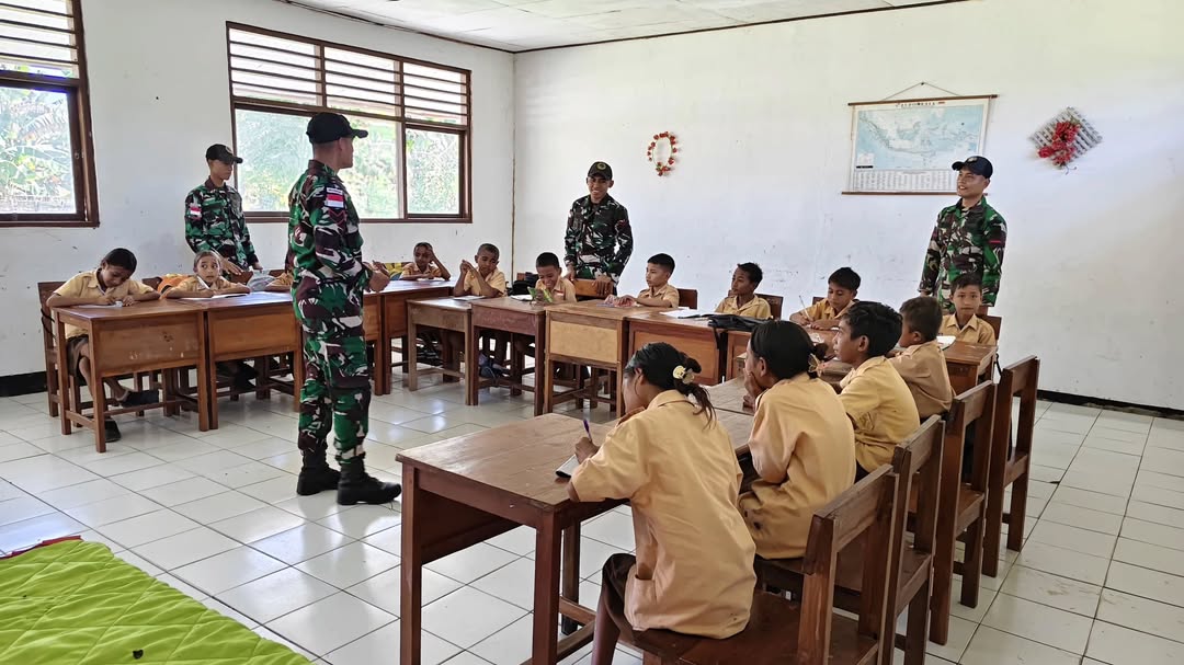 Malaka – Kepedulian terhadap dunia pendidikan kembali ditunjukkan oleh Satgas Pamtas RI–RDTL Sektor Timur Yonarmed 12 Kostrad melalui Pos Motamasin dengan melaksanakan kegiatan pengajaran di SDN Metamauk, Desa Alas Selatan, Kecamatan Kobalima Timur, Kabupaten Malaka. Sabtu (25/04/2026).