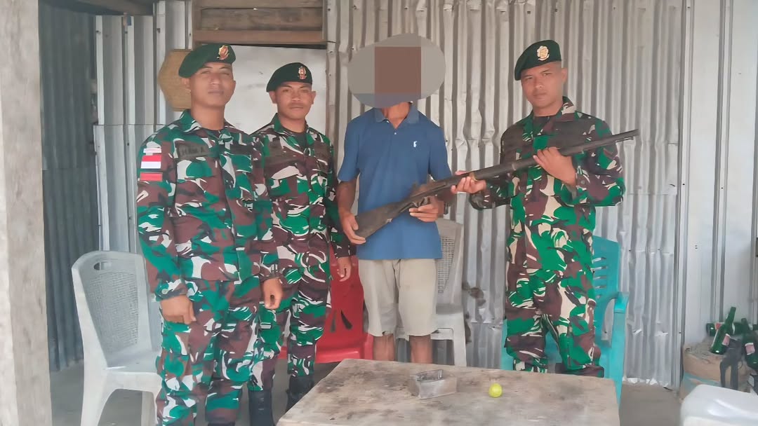 Seorang warga berinisial Bapak MB (50) secara sukarela menyerahkan 1 (satu) pucuk senjata api jenis Springfield kepada personel Satgas. Penyerahan tersebut menjadi indikator meningkatnya kesadaran hukum masyarakat di wilayah perbatasan.