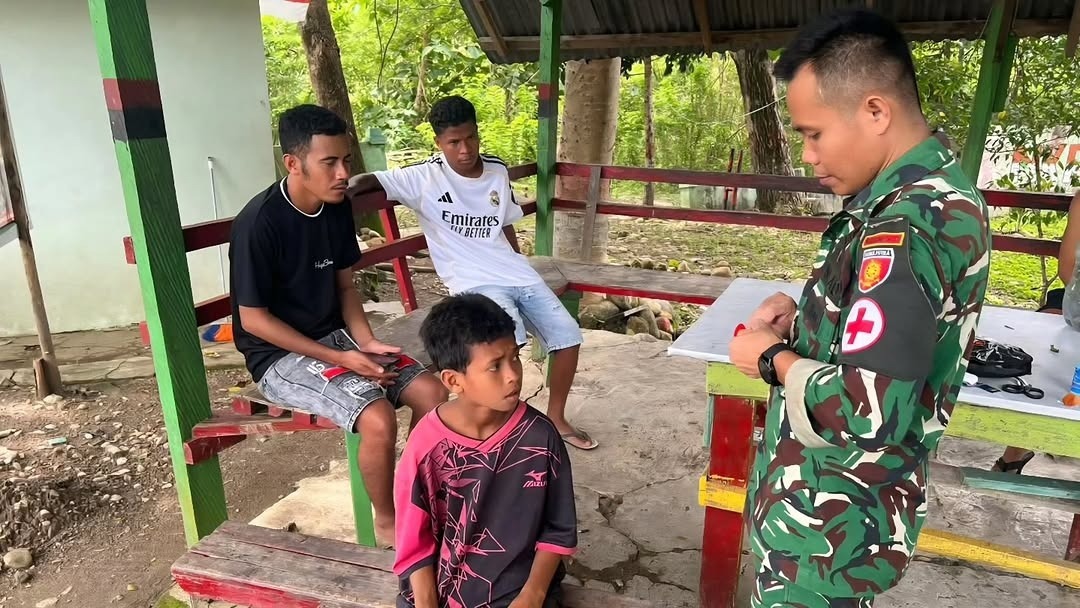 Pelayanan kesehatan diberikan kepada seorang anak bernama Milton Dos Santos (11), yang datang ke Pos Salore dengan kondisi luka sobek di bagian tangan akibat terkena benda tajam. Dengan sigap dan penuh kepedulian, tim kesehatan Pos Salore yang dipimpin oleh Praka Marsel segera melakukan pemeriksaan dan tindakan medis berupa pembersihan luka, pemberian obat, serta penanganan lanjutan guna mencegah infeksi dan mempercepat proses penyembuhan.
