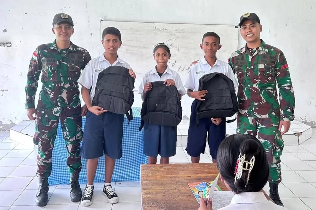 Malaka – Satgas Pamtas RI–RDTL Sektor Timur Yonarmed 12 Kostrad melalui Gadik Pos Haslot memberikan pembekalan wawasan kebangsaan kepada pelajar SMP Negeri Metamauk, Desa Alas Selatan, Kecamatan Kobalima Timur, Kabupaten Malaka, Jumat (10/04/2026).
